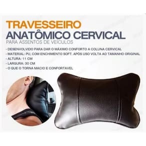 Almofada cervical veicular é um travesseiro/almofada feito para apoiar a cervical e a cabeça no encosto do banco do veículo. Seu uso diário, faz com que o tempo que você passa dirigindo seja mais confortável e benéfico para a saúde, eliminando a tensão e as dores no pescoço e na cabeça, além de evitar possíveis lesões em casos de movimentos bruscos com freiadas e batidas. Características: altura do item: 08 cm largura do item: 18 cm comprimento do item: 27 cm o que o torna macio e confortável fabricado em tecido sintético resistente e com enchimento em soft silicone possui memória após uso volta ao tamanho