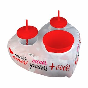 ALMOFADA PORTA PIPOCA 2 COPOS EM FORMATO DE CORAÇÃO Almofada porta pipoca com compartimentos para dois copos e um balde de pipoca. Ótima lembrancinha para casais apaixonados!!