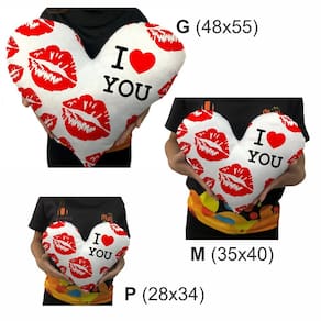 DESCRIÇÃO DO PRODUTO1. Almofadas no formato de coração em 3 tamanhos: Tamanho P 28x34cm, tamanho M 35x40cm e tamanho G 48x55cm;2. Impressão / estamparia de alta qualidade, em tecido pelúcia, super macio, antialérgico e muito sedoso.