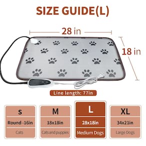 almofada de aquecimento para cães - Configuração atualizada: almofada de aquecimento para filhotes de 71 x 45 cm para caixas de areia (para filhotes e filhotes recém-nascidos, gatos adultos) + termostato inteligente com desligamento automático. Interface reforçada + cabo de arame para mais segurança. - Aquecimento rápido: fio de aquecimento em espiral duplo, aquece rapidamente em 10 minutos após ligá-lo, fornece calor suficiente rapidamente para o seu animal de estimação, proteção integrada contra falta de energia. Ao usar, coloque a almofada de aquecimento plana (tente não dobrar mais de 90 graus para usá-la) - Termostato inteligente: temperatura ajustável de 26.7 °C ~ 54.4 °C, o tempo de abertura entre 1 hora ~ 24 horas é livremente ajustável, nova função normalmente aberta "on" gear. Observe que desligue a almofada de aquecimento para animais de estimação imediatamente após o uso - Material de polímero especial: tecido de poliéster de alta resistência, forte e durável. A camada interna é de PVC, sem infiltração de água dentro do tapete