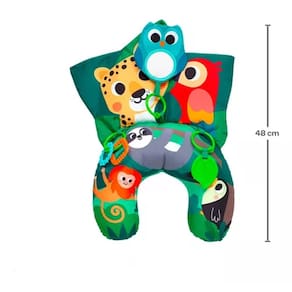 A almofada de atividades BUBA acompanha o bebê em suas divertidas fases de desenvolvimento. Seu formato de meia lua é extremamente confortável para o bebê se apoiar de bruços na almofada macia e brincar com conforto.Nessa posição, a coordenação motora será estimulada, pois ele terá ao seu alcance vários brinquedos como mordedor, argolas texturizadas, abelha com som de amassado, cores e estampas vibrantes, além de um painel super colorido com um animal e som de amassado para o bebê tocar.Os brinquedos também podem ser removidos e pendurados no carrinho do bebê ou no berço.CARACTERÍSTICAS TÉCNICAS:Conteúdo da Embalagem: 1 Almofada De Atividades Amazônia BubaDimensões Aproximadas do Produto: 50cm x 30cm x 10cm(Altura x Largura x Comprimento/Profundidade)Dimensões Aproximadas da Embalagem: 30cm x 33cm x 11cm(Altura x Largura x Comprimento/Profundidade)Material/Composição: Tecido e Enchimento 100% PoliésterIdade Mínima Recomendada: A partir de 4 MesesParticipantes: A partir de 1 pessoaAlimentação: Não se aplicaMarca: Buba