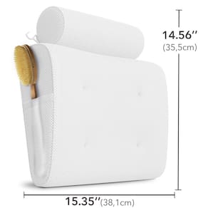 Transforme o seu banho diário em uma experiência de spa com o travesseiro de banho Everlasting Comfort ultra pelúcia. Ergonomicamente projetado para suporte inteligente, possui um apoio de cabeça firme e conforto totalmente ajustável para a parte superior, média e inferior das costas. Além disso, as ventosas potentes prendem o travesseiro no lugar, para que não haja interrupção no seu relaxamento. Envolto em uma capa de malha macia e respirável, o travesseiro de spa apresenta camadas de malha acolchoadas de 15 mm de espessura para ventilação e secagem ideais. Após o uso, basta deixar o travesseiro de pescoço da banheira na banheira para evitar gotejamento de água e, em seguida, use o gancho embutido para pendurá-lo em qualquer lugar - em um toalheiro, no chuveiro ou em qualquer lugar conveniente. Há até um prático bolso lateral para guardar seus acessórios de banho, como a bucha incluída. A Everlasting Comfort é a escolha para qualidade premium e alívio eficaz, e este travesseiro de banho para banheira traseira reta oferece um estilo acessível. Travesseiro de banho 100% poliéster travesseiro de banheira de luxo. Lavar à mão em água fria; secar na horizontal. Não passar a ferro. - Conforto luxuoso: experimente o máximo relaxamento com nossos travesseiros de banheira para cabeça e pescoço, projetados para contornar sua cabeça, pescoço, ombros e costas para uma experiência de spa em casa (vem com bucha) - Ajuste versátil: nosso travesseiro de banho se encaixa sem esforço em todos os tipos de banheira, incluindo banheiras padrão, independentes, arredondadas ou retas. Desfrute de imersão luxuosa em qualquer banheira, spa ou jacuzzi com este travesseiro adaptável, os acessórios de banho ideais - Ventosas fortes: O travesseiro de banheira para banheira está equipado com 4 ventosas antiderrapantes potentes, agarra firmemente qualquer superfície lisa, garantindo estabilidade e eliminando a necessidade de reajuste constante - Acessórios de banho higiênicos e de secagem rápida para mulheres e homens: com uma capa de malha respirável, nosso travesseiro de banheira promove o fluxo de ar, desencoraja o acúmulo de água e seca rapidamente. Desfrute de um travesseiro limpo e fresco que está sempre pronto para o seu próximo banho - Gancho embutido conveniente: mantenha seu banheiro organizado com o gancho de secagem embutido. Pendure facilmente seus travesseiros de banheira para cabeça e pescoço em toalheiros, hastes de chuveiro ou ganchos de porta para armazenamento e secagem sem complicações