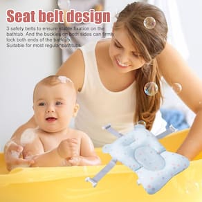 - ? Design atualizado: nossa almofada de banho para bebês foi projetada com um apoio de cabeça e pernas elevados para manter os bebês confortáveis e seguros durante a hora do banho. Adequado para bebês de 0 a 12 meses, possui textura antiderrapante e fivelas para maior segurança.