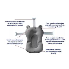 Com alças que se acoplam na banheira, a almofada forma um encosto agradável e prático para o posicionamento do bebê.