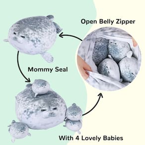 Almofada Chubby Blob Seal Pelúcia Bichos de Pelúcia Fofos - Este travesseiro gordinho de vedação tem enchimento de algodão PP de alta qualidade e tecidos amigáveis à pele dão a você uma melhor sensação de toque na pele. Chique, macio e parece que você está abraçando um algodão doce. - Busque uma vida simples e confortável, abrace este adorável travesseiro de pelúcia de animal de foca, aconchegando-se na cama ou sofá, traga a você um toque de doçura e diversão neste inverno! - Este travesseiro de brinquedo de pelúcia com selo pode ser utilizado como travesseiro de abraço, travesseiro de soneca, travesseiro de cochilo de escritório ao meio-dia, brinquedos de pelúcia, atende a todas as suas expectativas. - Esta boneca de pelúcia é adequada como presente para o Natal, Dia dos Namorados, Festival da Primavera e outros feriados para namoradas, namorados ou família, macia e fofa, deixe as pessoas colocá-la no chão. - Incluído na embalagem: 1 foca para mamãe + 4 focas de bebê.
