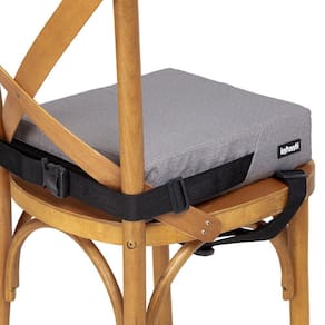 Almofada para uso como assento de elevação para refeições nas mesas dos adultos Tiras de fixação ajustáveis para uso seguro sobre diferentes modelos de cadeira Uso a partir dos 36 meses até 7 anos Capa removível e lavável Tecido aquablock: impermeável, resistente à ação do sol, durável e livre da formação de fungos Espuma densidade D28: muito macio e confortável