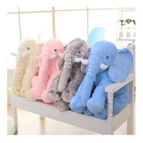 has que tu bebe, o tu mismo tengan unos dulces y relajados sueños gracias a esta hermosa almohada peluche con forma de elefante.Hermoso y suave cojín tipo peluche con forma de elefante. Modo 40 cm. Uso ideal para bebés, niños y adultostamaño perfecto para acurrucar al bebé, muy cómodo para usarlo como almohada, un buen compañero de los niños cuando toman la mamadera, ven TV or al dormir, por su particular forma puede ser utilizado como cojín cervical por los más grandes de la casa.Relleno adaptable al bebé é evitando así lo cólicos y reflujofortalece el apego ya que tu bebe se sentira abrazado con este lindo e suave elefantito