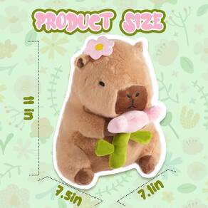 CHDBLOCK Flor capivara de pelúcia, linda capivara, travesseiro de pelúcia kawaii, flores de pelúcia aniamls capivara, brinquedos de pelúcia presentes para crianças 28 cm - Esta capivara de pelúcia que ama flores é a companhia perfeita para entusiastas de plantas! Com seu design adorável, incluindo uma tulipa nas patas e uma linda flor na cabeça, é impossível não se apaixonar. Aviso: o hobby da capivara é jardinagem de flores, não mastigar flores! - Feito com materiais super macios e luxuosos, esta pelúcia Capybara é uma delícia para se aconchegar. Seu cabelo sedoso e corpo de pelúcia proporcionam o máximo conforto para sessões de carinho. Você não será capaz de resistir a apertar esta fofinha! - Seja você um fã de capivaras ou flores (ou ambos! ), este brinquedo de pelúcia trará um sorriso ao seu rosto. É uma adição única e charmosa a qualquer coleção, certamente iluminará o seu dia sempre que você ver. Quem precisa de um buquê de flores quando você tem uma capivara de flores? - Perfeito para crianças e adultos, esta capivara de pelúcia é ideal para brincadeiras, decoração ou simplesmente como um companheiro de abraços. Seu uso versátil o torna um ótimo presente para entusiastas de capivara, amantes de animais ou qualquer pessoa que precise de um pouco de alegria floral. - Fique tranquilo, nossa capivara floral vem com atendimento ao cliente de alta qualidade. Se você tiver alguma dúvida ou preocupação, nossa equipe está aqui para ajudar. Junte-se à mania da Flower Capybara hoje e experimente a alegria de ter seu próprio amigo amante de flores!