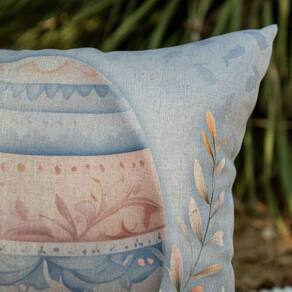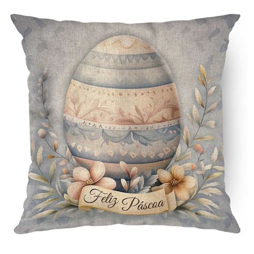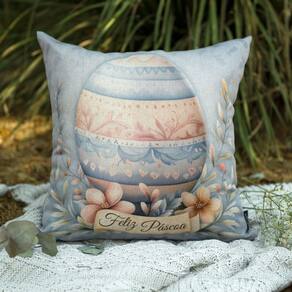 Uma coleção que evoca memórias especiais e a delicadeza da natureza, com produtos que encantam pela suavidade e beleza. Uma peça temática e encantadora, com estampa romântica e cativante. Sua versatilidade permite que seja usada sozinha ou combinada em composições, oferecendo aos seus clientes diversas possibilidades de decoração. Contém: 1 Almofada com enchimento em fibra siliconada. Tamanho: 43 x 43 cm Material: Rustic Linen Detalhes: Sem aplicações Fechamento: Zíper Invisível Forma: Quadrada Cor: Azul, bege e rosé Estampa frente: Ovo e flores Estampa verso: Ovo e flores Produto: Nacional