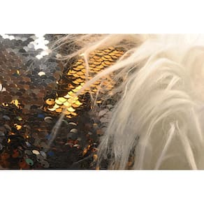 Dimensões do produto 45x45x15 Cor: Paetê Prata/ Dourado Pelo: Branco