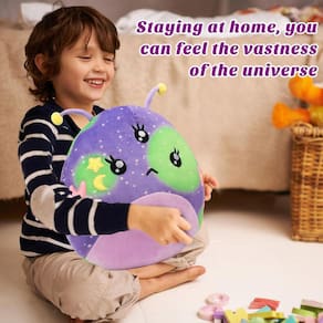 - Design alienígena exclusivo: esta almofada de pelúcia alienígena usa um design exclusivo para se diferenciar das cores tradicionais e injetar energia na imagem geral. Tem três olhos grandes e dois tentáculos fofos e é embelezada com padrões de estrelas e da lua. Todo o tecido é estampado com a aparência do universo; portanto, quando você o segura nos braços, é como se estivesse na vastidão do universo.