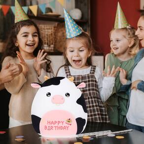 O travesseiro de pelúcia de aniversário de vaca é agradável à pele e confortável. O bordado requintado torna o travesseiro ainda mais adorável e, se seu filho receber um travesseiro tão fofo, ele se transformará em um momento inesquecível. Ele está muito alinhado com a atmosfera feliz de aniversário. Além disso, também é adequado para decoração de casa e uso no escritório. Esperamos que nossos travesseiros possam tornar a vida mais interessante! - Design exclusivo de aniversário: este travesseiro de pelúcia de vaca de aniversário tem um nariz rosa e uma expressão adorável. As palavras rosa "Aniversário" são bordadas na barriga, esses elementos se misturam para adicionar um charme único a esta vaca de aniversário - Presentes especiais de aniversário: os elementos e a expressão fofa deste travesseiro de pelúcia de vaca são perfeitos para surpresas de aniversário. Se a criança receber um presente de aniversário, isso tornará o aniversário mais significativo e deixará uma boa memória para a criança - Vários usos: nosso travesseiro de pelúcia de vaca de aniversário pode ser utilizado em uma variedade de cenários e serve como uma almofada para relaxar sua mente e corpo quando você se sentir cansado no escritório. Também pode ser utilizado como decoração em casa e no carro para adicionar um toque fofo à vida, e abraçá-lo ajudará você a dormir em paz, então o travesseiro de pelúcia de vaca de aniversário é uma ótima companhia para entretenimento da vida - Boa qualidade: este travesseiro de pelúcia de aniversário de 30 cm é feito de 100% algodão PP, macio e flexível. O padrão acima é utilizado para impressão e processo de bordado para trazer a você uma excelente experiência e não será facilmente danificado. Usamos o processo de produção requintado para que ele possa acompanhá-lo por um longo período de tempo - CONSIDERAÇÃO: para que você liberte suas mãos, nosso travesseiro de pelúcia pode ser lavado na máquina, mas recomendamos que você tente lavar à mão, para que você possa manter sua maciez. Responderemos às suas perguntas o mais rápido possível e forneceremos um serviço satisfatório. Você ficará feliz com sua compra e seus filhos vão adorar
