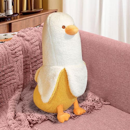 - [Presente perfeito]: esses lindos bichinhos de pelúcia são presentes perfeitos para qualquer festival, como Natal, aniversário e Dia dos Namorados! Um presente de Natal para crianças, meninas e namoradas. Use um brinquedo de pelúcia de pato em forma de banana para expressar seu amor. Ninguém recusaria um presente tão lindo.