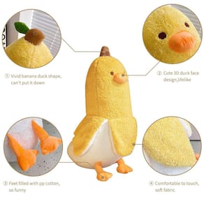 - [Material macio]: brinquedos de pelúcia Banana Duck que usam pelúcia macia de alta qualidade e enchimento total de algodão PP, o travesseiro de pato é macio, confortável e não se deforma facilmente.