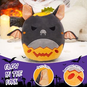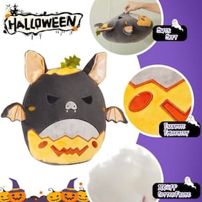 Houwsbaby Mummy Vampire Bat Stuffed Plush Pillow é um morcego vampiro usando uma bandagem. O travesseiro de pelúcia tem um par de asas pequenas, orelhas vermelhas, olhos vermelhos e o outro olho está enrolado em uma bandagem, com dois dentes pontiagudos expostos do lado de fora. O material  é tecido macio de pelúcia. 100% preenchido com algodão PP.