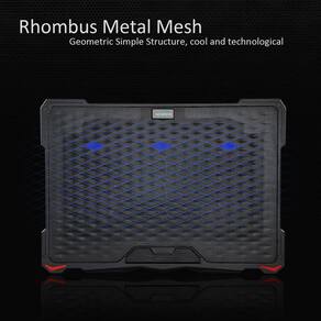 Esta almofada de resfriamento com ventilador de laptop pode acomodar laptops de até 17,3" em uso na mesa. A almofada de resfriamento para laptop tem uma grande ventoinha central com duas ventoinhas menores em cada lado (5 ventiladores no total). A parte superior do suporte para ventiladores do laptop é construída com malha de metal e as laterais e a parte inferior são de plástico