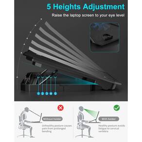 -?Suportes de altura ergonômicos?Cinco alturas ajustáveis projetadas para colocar o suporte em pé ou na posição plana e manter seu laptop em uma posição adequada. Dois defletores evitam que seu laptop deslize para baixo ou caia; não é apenas uma almofada de resfriamento para laptop, mas também um suporte perfeito para laptop.