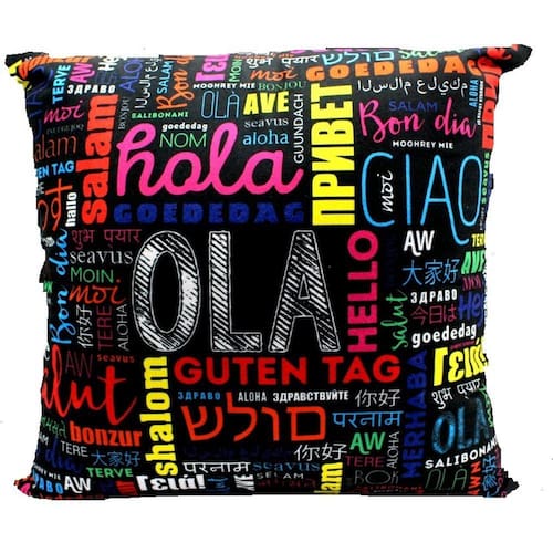 Almofada com um lindo contraste motivacional para dar aquela grande aparência a qualquer lugar onde ela ira ficar Suaves, macias, confortáveis, com estampa Palavras em línguas diferentes de saudações tecido em veludo, com zíper invisível e capa lavável e enchimento de fibra incluso. altura: 30cm | largura: 70cm | profundidade: 10cm | peso: 260gr