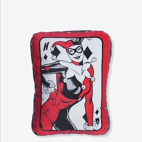 PERSONAGEM - ARLEQUINA MARCA - DC LICENCIADOR - WARNER ALTURA (CM) - 36 LARGURA (CM) - 28 COR PREDOMINANTE - VERMELHO FORMATO - RETANGULAR COMPRIMENTO (CM) - 13 MATERIAL DO TECIDO - TECIDO VÊLUDO (100% POLIÉSTER) MATERIAL DO ENCHIMENTO - FIBRA SILICONADA (100% POLIÉSTER)