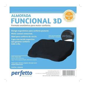 Almofada funcional 3d perfetto cor preta Almofada funcional 3d preta perfettoFormato anatômico para maior conforto. Design ergonômico para conforto postural. Miolo central removível. Ideal para conforto do cóccix. Capa com tecido esportivo que garante conforto todo o dia. Possui alça personalizada para facilitar o transporte. Espuma 100% látex de poliuretano. Capa: tecido especial dryfit, com zíper, removível e lavável. Medidas: 43cm x 35cm x 8cm
