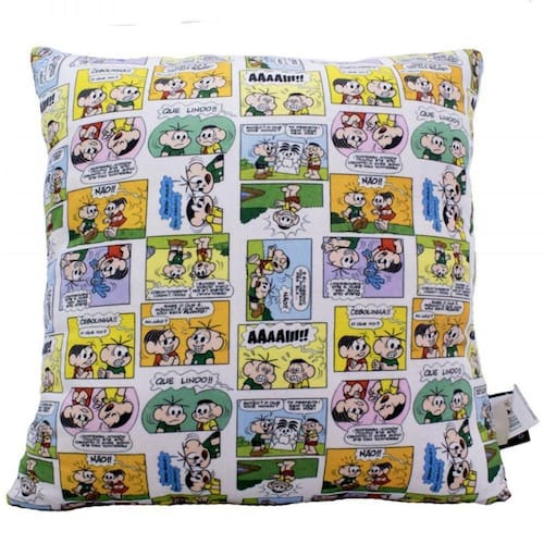 Almofada Decorativa da Turma da Mônica. Almofada de póliester, leve e com estampa de alta qualidade da Turma da Mônica. O enchimento é de fibra de poliéster pequenas bolinhas de isopor e é perfeita para decoração do seu quarto ou sofá. Características Tamanho: Altura: 35cm | Largura: 37cm | Profundidade: 15cm Peso: 400 gramas Material: Tecido de póliester e enchimento de fibra de poliéster Ean: 4894290624147
