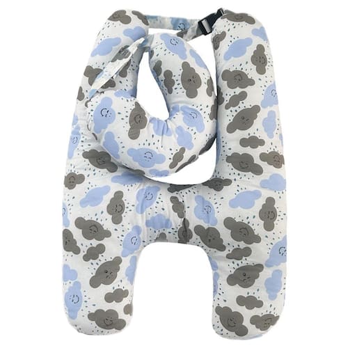 Almofada para viagem Esta almofada tem um design em forma de h que reduz a largura da parte de apoio do pescoço e permite que a cabeça descanse confortavelmente em ambos os lados, acomoda o pescoço de forma correta mesmo durante o sono oferecendo maior conforto e comodidade para as viagens. Esse apoio é ideal para viagens longas de carro, de avião ou cochilos em casa e pode ser Utilizado por crianças e por adultos, confeccionada com fibras de silicone macia e uma alça ajustável para prender no encosto de cabeça do carro para que fique fixa, perdendo o risco de escorregar. Acompanha uma almofada que pode ser Utilizado como protetora de queixo ou de pescoço para agregar ainda mais conforto. Acompanha: 01 almofada h de 72cm x 55cm medidas aproximadas 01 almofada para pescoço ou queixo com tecido adesivo Composição: Tecido: 80% algodão e 20% poliéster Enchimento: fibra de silicone macia 100% poliéster Obs.: a foto é ilustrativa. O produto pode sofrer diferenças na tonalidade de cor, dependendo da configuração da tela do seu celular ou computador brilho, contraste etc. os demais itens compostos no cenário da foto não estão inclusos. Marca: Gabriela Martin Enxovais