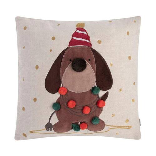 A Capa de Almofada Holiday Puppy em tricot é produzida em 100% algodão com padronagem divertida cachorro salsicha.