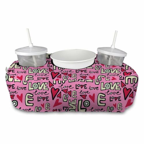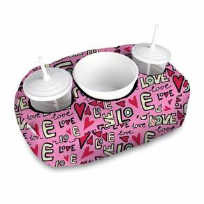 Almofada com compartimento para dois copos com canudo e um balde, onde conforto, praticidade e diversão se unem.