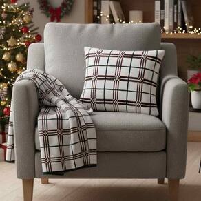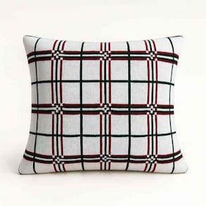 - Estampa xadrez em branco, vermelho e verde, cores que evocam o espírito natalino;