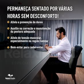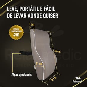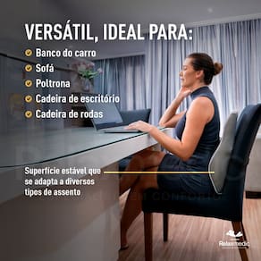 Almofada em formato ortopédico que proporciona maior conforto nas costas e lombar em longos períodos sentado.