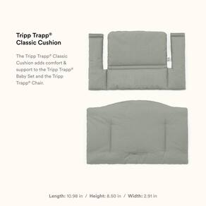 Almofada clássica Tripp Trapp² OCS verde - Suporte supermacio: a almofada Tripp Trapp Classic 2 é feita para acompanhar o conjunto de bebê Tripp Trapp, mas também pode ser usada sem ela em todas as cadeiras Tripp Trapp. Oferece suporte super macio para bebês e crianças, tornando cada assento aconchegante. - Compatibilidade – Esta versão da almofada é compatível apenas com o Baby Set 2, já que não há mais peças no tecido para as tiras do arnês Stokke autêntico passarem. - Fácil de usar: a almofada clássica é fácil para os pais fixarem e removerem da cadeira Tripp Trapp e da cadeira alta. Além disso, é lavável na máquina para limpeza rápida. - ALGODÃO ORGÂNICO - Criada para atender ao padrão de conteúdo orgânico (OCS), a almofada clássica Tripp Trapp adiciona conforto à cadeira e cadeira alta, mantendo o bebê feliz em cada refeição. - Design com um propósito – Tripp Trapp foi projetado por Peter Opsvik em 1972. Inspirado por seu filho Tor, que tinha crescido fora de sua cadeira alta, mas ainda era muito pequeno para uma cadeira de adulto, Peter pretendia sentar todas as idades na mesma mesa confortavelmente.