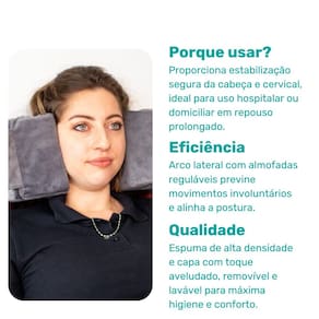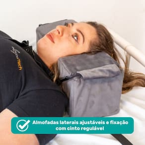 Seu design anatômico com arco de proteção evita lateralizações indesejadas da cabeça, promovendo o correto alinhamento postural.