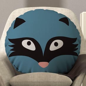 Almofada Redonda Avulsa Cheia Infantil Bichinhos 45cm X 45cm - Enchimento De Silicone Estampa Guaxinim