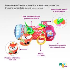 Almofada Rolinho de Atividades e Desenvolvimento Para Bebê com Mordedor Removível Maxi Baby