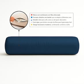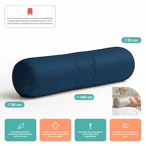 Almofada Travesseiro Bastão Tubo Rolo Dot 140cm Macia Veludo Azul Marinho - Abmaza