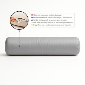 Almofada Travesseiro Bastão Tubo Rolo Dot 140cm Macia Veludo Cinza Claro - Desk Design
