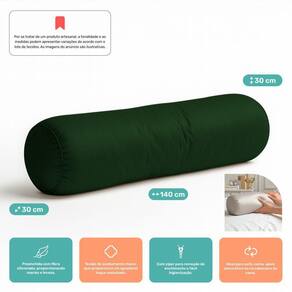 Almofada Travesseiro Bastão Tubo Rolo Dot 140cm Macia Veludo Verde Escuro - Desk Design