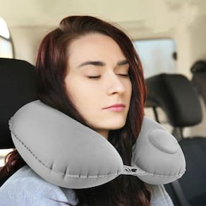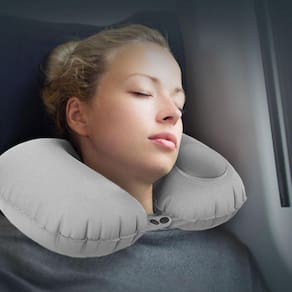 Disponpiveis nas coresCinza, verde musgo, verde claro, roxo, pretoAlmofada / Travesseiro de ViagemDesenvolvido em formato tipo ferradura para envolver o pescoço e aliviar a pressão, promovendo conforto e apoio durante a viagem. Ideal para apoiar a cabeça durante viagens de carro, avião e ônibus ou em casa para leitura e assistir tv.Após o você dobra o travesseiro MBFit e guarda na mala, bolsa ou mochila e na hora de dormir é só retirar e prontoEle volta ao seu formato .Largura: 30 cm, Altura: 29 cm.- Superfície em Veludo Macio- Válvula de silicone para Ser Inflado- Suporte de Cabeça e PescoçoConfeccionado com veludo macio, elastano e poliuretano Extra Macio, para fácil limpeza e higienização.Possui bico retrátil de silicone (válvula) para inflar, garantindo maior comodidade no descanso e na hora de usar e de guardar.Modelo antipressão com anti proliferação de ácaros, fungos e bactérias, melhorando assim a sensação de conforto e bem-estar.
