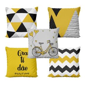 Almofadas Amarelas Decorativas E Geométricas Para Sala 40X40Decorar sua casa com lindas Almofadas é aliar conforto e personalidade.E não existe sensação melhor do que poder chegar em casa depois de um dia cansativo de trabalho e curtir o aconchego do nosso lar.E por falar em aconchego, um item que transmite muito bem isso são as Almofadas Decorativas que você encontra na Novadecora.Se você é daqueles que adora decoração e gosta de deixar a sua casa com a sua personalidade, aqui na Novadecora é o lugar ideal para encontrar as almofadas mais lindas, dos mais variados estilos.Kit Com 5 Almofadas Decorativas em impressão digital com estampa exclusiva frente e versoTecidoCapa confeccionada em tecido oxford 100% poliéster, um tecido de ótima qualidade e durabilidade. O oxford proporciona mais conforto e um toque agradável, além das cores ficarem mais vivas deixando seu ambiente mais decorado.Características e especificações:Marca: novadecoraTecido: oxfordAlmofada já cheia pronta para usoFibra siliconizada anti-alérgica e anti-ácaro com forro em tntAlmofada lavável - sem perder a qualidade e impressãoZíper invisívelDimensões lxa 40x40 cmConteúdo da embalagem 5 almofadas com enchimentos - Estampa Geométrica.Importante sobre lavagem:- Lavar manualmente com sabão neutro- Temperatura máxima de lavagem 40°C. - Não usar alvejante. - Secar a sombra.- Temperatura máxima de base do ferro 110°C. - Não limpar a seco.Garantia:Três meses contra defeitos de fabricação.As cores das estampas podem variar de acordo com a calibração do seu monitor.AVISO: Não nos responsabilizaremos pela diferença de cores em caso de pedidos feitos separadamente, no caso produzidos em lotes diferentes.Agradecemos a visita e boas compras Marca: Novadecora