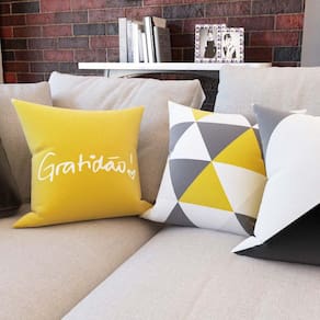 Almofadas Amarelas Decorativas Gratidão Geométricas 40X40Cm E não existe sensação melhor do que poder chegar em casa depois de um dia cansativo de trabalho e curtir o aconchego do nosso lar. E por falar em aconchego, um item que transmite muito bem isso são as Almofadas Decorativas que você encontra na Novadecora. Se você é daqueles que adora decoração e gosta de deixar a sua casa com a sua personalidade, aqui na Novadecora é o lugar ideal para encontrar as almofadas mais lindas, dos mais variados estilos. Kit Com 4 Almofadas Decorativas em impressão digital com estampa exclusiva frente e verso Capa confeccionada em tecido Oxford 100% poliéster, um tecido de ótima qualidade e durabilidade. O Oxford proporciona mais conforto e um toque agradável, além das cores ficarem mais vivas deixando seu ambiente mais decorado. Características e especificações: Marca: Novadecora Almofada já cheia Pronta para uso Almofada lavável - sem perder a qualidade e impressão Zíper invisível Dimensões lxa 40x40 cm É produto personalizado: Sim Conteúdo da embalagem 4 almofadas Importante sobre lavagem: - Lavar manualmente com sabão neutro - Temperatura máxima de lavagem 40°C. - Não usar alvejante. - Secar a sombra. - Temperatura máxima de base do ferro 110°C. - Não limpar a seco. Marca: Novadecora