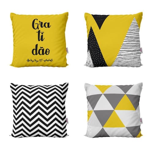 Almofadas Amarelas Decorativas Gratidão Para Sofá 40X40Cm E não existe sensação melhor do que poder chegar em casa depois de um dia cansativo de trabalho e curtir o aconchego do nosso lar. E por falar em aconchego, um item que transmite muito bem isso são as Almofadas Decorativas que você encontra na Novadecora. Se você é daqueles que adora decoração e gosta de deixar a sua casa com a sua personalidade, aqui na Novadecora é o lugar ideal para encontrar as almofadas mais lindas, dos mais variados estilos. Kit Com 4 Almofadas Decorativas em impressão digital com estampa exclusiva frente e verso Capa confeccionada em tecido Oxford 100% poliéster, um tecido de ótima qualidade e durabilidade. O Oxford proporciona mais conforto e um toque agradável, além das cores ficarem mais vivas deixando seu ambiente mais decorado. Características e especificações: Marca: Novadecora Almofada já cheia Pronta para uso Almofada lavável - sem perder a qualidade e impressão Zíper invisível Dimensões lxa 40x40 cm É produto personalizado: Sim Conteúdo da embalagem 4 almofadas Importante sobre lavagem: - Lavar manualmente com sabão neutro - Temperatura máxima de lavagem 40°C. - Não usar alvejante. - Secar a sombra. - Temperatura máxima de base do ferro 110°C. - Não limpar a seco. Marca: Novadecora