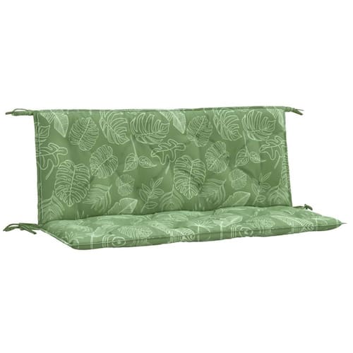 - Material: tecido (100% poliéster) - - Material de enchimento: fibra oca- - Dimensões (cada): 47,2" x 19,7" x 2,8" (C x L x T) - - Comprimento da corda (cada): 11,8"- - Característica do padrão de folha- - Com 4 conjuntos de cordas- - À prova de água- - A entrega contém: - - 1 x almofada de assento- - 1 x almofada traseira - Proposta 65 da Califórnia