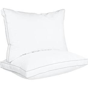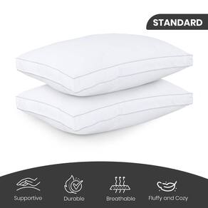 Dê ao seu quarto uma sensação luxuosa sem comprometer a qualidade com nossas almofadas de reforço de qualidade premium. Borda reforçada de 5 cm e uma forma resistente. Se você dorme de lado, dorme frontal ou traseiro, oferecemos uma solução para fornecer o nível de conforto perfeito que você estava procurando. O suporte adequado é a chave para se entregar ao relaxamento que você merece ao terminar o seu dia e nossos travesseiros de cama são a única solução. Cada um dos nossos travesseiros é cuidadosamente projetado para maximizar o seu potencial de conforto. Lavar a seco apenas para melhores resultados dá ao seu quarto um visual elegante. Observação: Aguarde 48 a 72 horas para que o travesseiro se expanda totalmente. Você também pode pressionar o travesseiro algumas vezes para acelerar a expansão. Se seus travesseiros ainda não se expandirem, use os seguintes métodos para levantá-los: 1. Coloque os travesseiros na secadora com 2 bolas de tênis: comece colocando seu travesseiro na secadora com 2 bolas de tênis (de preferência embrulhadas em um pano ou meias separadamente). A bola de tênis vai bater no travesseiro, afofando o enchimento. Secar em temperatura baixa por uma hora para garantir que seu travesseiro fique mais fofo e macio. 2. Deixe o travesseiro ao sol: ao colocar as almofadas ao sol por algumas horas em um dia claro irá evaporar a umidade que se acumula durante a noite com seu uso e os travesseiros vão afofar ao longo do dia. Você também pode pendurar as almofadas do lado de fora em uma linha de roupas. - Almofadas de cama com reforço – Conjunto de 2 travesseiros de cama com reforço branco com debrum branco e costura dupla que dá uma aparência sofisticada aos travesseiros e também melhora a durabilidade - Tamanho padrão – cada travesseiro oferece suporte adequado para sua cabeça, pescoço e ombros. - Enchimento de fibra de poliéster – O enchimento de fibra de poliéster premium utilizado garante uma longa noite de sono sem interrupção. - Escolha ideal – para quem dorme de lado, barriga e costas, pois oferece o máximo de conforto para todas as posições de dormir. - Tecido macio e durável – Nossos travesseiros são feitos com um tecido de mistura de algodão de qualidade premium para melhorar ainda mais sua sensação e conforto. - Instruções de cuidado: recomenda-se limpar o travesseiro ou lavar o tecido à mão