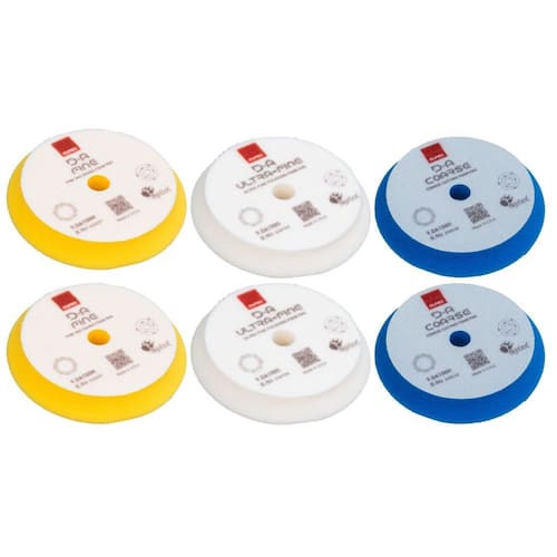 Experimente melhor desempenho de polimento e resultados impressionantes com esta coleção abrangente de blocos! Este pacote de almofadas de polimento de espuma RUPES inclui duas almofadas grossas de 15 cm, duas almofadas finas de 15 cm e duas almofadas ultrafinas de 15 cm. A almofada de espuma fina é a almofada de espuma mais versátil da linha RUPES BigFoot, proporcionando uma taxa eficaz de remoção de defeitos e capacidade para acabamento de alto brilho na maioria dos sistemas de pintura. Esta nova almofada oferece o mesmo material de espuma de ótimo desempenho que a espuma amarela orbital aleatória atual, expandida para também funcionar com orbitais acionados por engrenagens, apenas com um tom de amarelo mais vibrante. | A almofada de espuma ultrafina é projetada para acabamento de alto brilho e polimento em superfícies de tinta propensas a embaçamento ou muito macias. Também pode ser utilizado para a aplicação de selantes ou ceras. | A almofada de espuma grossa é especialmente projetada para ser usada com ferramentas orbitais aleatórias e acionadas por engrenagem. O material exclusivo de espuma de célula aberta remove defeitos leves a graves da maioria dos sistemas de pintura. Esta nova almofada combina os melhores aspectos das espumas azuis e verdes anteriores, com maior durabilidade e uma cor azul mais vibrante. - Almofada de espuma fina: proporciona uma taxa eficaz de remoção de defeitos e capacidade para acabamento de alto brilho na maioria dos sistemas de pintura - Almofada de espuma ultrafina: projetada para acabamento de alto brilho e polimento em superfícies de tinta propensas a embaçamento ou muito macias; também pode ser usada para a aplicação de selantes ou ceras - Almofada grossa: especialmente projetada para ser usada com ferramentas orbitais aleatórias e acionadas por engrenagem; o material de espuma de célula aberta exclusivo remove defeitos leves a graves da maioria dos sistemas de pintura - Perfil inferior: estas novas almofadas de espuma da série D-A apresentam uma altura otimizada da almofada amplamente testada para oferecer o melhor equilíbrio entre equilíbrio e desempenho de polimento - Borda de contorno: a borda de contorno nova e exclusiva melhora a estabilidade da almofada e oferece controle adicional nas curvas, permitindo que os usuários obtenham maior desempenho, mesmo em superfícies variadas