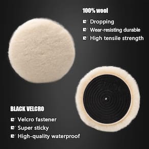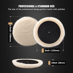 SPTA Almofadas de polimento de lã - 3 peças de 5 polegadas (125 mm) almofadas de corte, compostagem, polimento para polimento de carro - ?Tecnologia de fabricação avançada?: Feito de imitação de lã de alta qualidade, macio e durável, não danificará a superfície. Pode ser utilizado para pintar o espelho polido. - ?Fácil de usar?: Com suporte leve e adesivo, muito fácil de montar, você pode trocar as almofadas em segundos. Pode ser utilizado em máquina de polimento pneumática ou elétrica ou para polimento de detalhes automotivos. - ?Material de alta qualidade?As almofadas de polimento de lã SPTA são feitas de gancho de lã 100% natural, materiais naturais elásticos e puros, que são ecologicamente corretos e não deixam o cabelo flutuando durante o uso. O travesseiro de lã é lavável, uso repetido, reduz custos, economia econômica. - ?Bom desempenho?A almofada de polimento de lã não vai saltar nem esperar por todo o trabalho e não criará muito calor, o que não queima facilmente a tinta. - ?Ampla aplicação?Almofada de polimento oxidada, casca de laranja, arranhões profundos, arranhões de lixamento de tinta, revestimentos rígidos e revestimentos transparentes. Remoção de marcas e arranhões e oxidação de superfícies pintadas automotivas e de piso de madeira adequadas para corte.