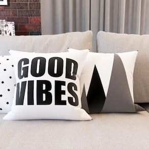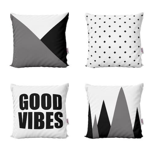 Almofadas Decorativas Preto Branco E Cinza Good Vibes 40X40Decorar sua casa com lindas Almofadas é aliar conforto e personalidade.E não existe sensação melhor do que poder chegar em casa depois de um dia cansativo de trabalho e curtir o aconchego do nosso lar.E por falar em aconchego, um item que transmite muito bem isso são as Almofadas Decorativas que você encontra na Novadecora.Se você é daqueles que adora decoração e gosta de deixar a sua casa com a sua personalidade, aqui na Novadecora é o lugar ideal para encontrar as almofadas mais lindas, dos mais variados estilos.Kit Com 4 Almofadas Decorativas em impressão digital com estampa exclusiva frente e versoTecidoCapa confeccionada em tecido oxford 100% poliéster, um tecido de ótima qualidade e durabilidade. O oxford proporciona mais conforto e um toque agradável, além das cores ficarem mais vivas deixando seu ambiente mais decorado.Características e especificações:Marca: novadecoraTecido: oxfordAlmofada já cheia pronta para usoFibra siliconizada anti-alérgica e anti-ácaro com forro em tntAlmofada lavável - sem perder a qualidade e impressãoZíper invisívelDimensões lxa 40x40 cmConteúdo da embalagem 4 almofadas com enchimentosImportante sobre lavagem:- Lavar manualmente com sabão neutro- Temperatura máxima de lavagem 40°C. - Não usar alvejante. - Secar a sombra.- Temperatura máxima de base do ferro 110°C. - Não limpar a seco.Garantia:Três meses contra defeitos de fabricação.As cores das estampas podem variar de acordo com a calibração do seu monitor.AVISO: Não nos responsabilizaremos pela diferença de cores em caso de pedidos feitos separadamente, no caso produzidos em lotes diferentes.Agradecemos a visita e boas compras Marca: Novadecora
