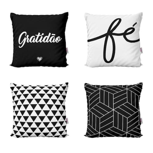 Almofadas Decorativas Preto e Branco Gratidão e Fé Para Sofá 40x40 - Novadecora Decorar sua casa com lindas Almofadas é aliar conforto e personalidade. E não existe sensação melhor do que poder chegar em casa depois de um dia cansativo de trabalho e curtir o aconchego do nosso lar. E por falar em aconchego, um item que transmite muito bem isso são as Almofadas Decorativas que você encontra na Novadecora. Se você é daqueles que adora decoração e gosta de deixar a sua casa com a sua personalidade, aqui na Novadecora é o lugar ideal para encontrar as almofadas mais lindas, dos mais variados estilos. Kit Com 4 Almofadas Decorativas em impressão digital com estampa exclusiva frente e verso TECIDO Capa confeccionada em tecido Oxford 100% poliéster, um tecido de ótima qualidade e durabilidade. O Oxford proporciona mais conforto e um toque agradável, além das cores ficarem mais vivas deixando seu ambiente mais decorado. Características e especificações: Marca: Novadecora Almofada já cheia Pronta para uso Almofada lavável - sem perder a qualidade e impressão Zíper invisível Dimensões lxa 40x40 cm É produto personalizado: Sim Conteúdo da embalagem 4 almofadas com enchimentos Importante sobre lavagem: - Lavar manualmente com sabão neutro - Temperatura máxima de lavagem 40°C. - Não usar alvejante. - Secar a sombra. - Temperatura máxima de base do ferro 110°C. - Não limpar a seco. Garantia: Três meses contra defeitos de fabricação. As cores das estampas podem variar de acordo com a calibração do seu monitor. AVISO: Não nos responsabilizaremos pela diferença de cores em caso de pedidos feitos separadamente, no caso produzidos em lotes diferentes. Marca: Novadecora