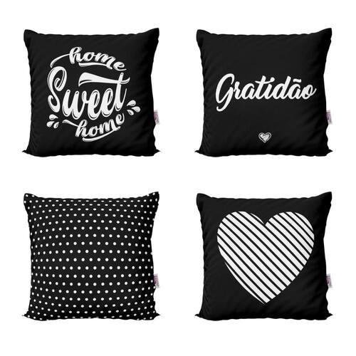Almofadas Decorativas Preto Gratidão Para Sala 40X40 Decorar sua casa com lindas Almofadas é aliar conforto e personalidade. E não existe sensação melhor do que poder chegar em casa depois de um dia cansativo de trabalho e curtir o aconchego do nosso lar. E por falar em aconchego, um item que transmite muito bem isso são as Almofadas Decorativas que você encontra na Novadecora. Se você é daqueles que adora decoração e gosta de deixar a sua casa com a sua personalidade, aqui na Novadecora é o lugar ideal para encontrar as almofadas mais lindas, dos mais variados estilos. Kit Com 4 Almofadas Decorativas em impressão digital com estampa exclusiva frente e verso Tecido Capa confeccionada em tecido oxford 100% poliéster, um tecido de ótima qualidade e durabilidade. O oxford proporciona mais conforto e um toque agradável, além das cores ficarem mais vivas deixando seu ambiente mais decorado. Características e especificações: Marca: novadecora Tecido: oxford Almofada já cheia pronta para uso Fibra siliconizada anti-alérgica e anti-ácaro com forro em tnt Almofada lavável - sem perder a qualidade e impressão Zíper invisível Dimensões lxa 40x40 cm Conteúdo da embalagem 4 almofadas com enchimentos Importante sobre lavagem: - Lavar manualmente com sabão neutro - Temperatura máxima de lavagem 40°C. - Não usar alvejante. - Secar a sombra. - Temperatura máxima de base do ferro 110°C. - Não limpar a seco. : Três meses contra defeitos de fabricação. As cores das estampas podem variar de acordo com a calibração do seu monitor. AVISO: Não nos responsabilizaremos pela diferença de cores em caso de pedidos feitos separadamente, no caso produzidos em lotes diferentes. Agradecemos a visita e boas compras Marca: Novadecora