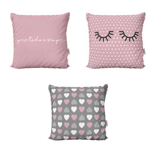 Almofadas Personalizadas e Decorativas Rosa Para Todo o Sempre Para Sala 40x40 - Novadecora Decorar sua casa com lindas Almofadas é aliar conforto e personalidade. E não existe sensação melhor do que poder chegar em casa depois de um dia cansativo de trabalho e curtir o aconchego do nosso lar. E por falar em aconchego, um item que transmite muito bem isso são as Almofadas Decorativas que você encontra na Novadecora. Se você é daqueles que adora decoração e gosta de deixar a sua casa com a sua personalidade, aqui na Novadecora é o lugar ideal para encontrar as almofadas mais lindas, dos mais variados estilos. Kit Com 3 Almofadas Decorativas em impressão digital com estampa exclusiva frente e verso TECIDO Capa confeccionada em tecido Oxford 100% poliéster, um tecido de ótima qualidade e durabilidade. O Oxford proporciona mais conforto e um toque agradável, além das cores ficarem mais vivas deixando seu ambiente mais decorado. Características e especificações: Marca: Novadecora Almofada já cheia Pronta para uso Almofada lavável - sem perder a qualidade e impressão Zíper invisível Dimensões lxa 40x40 cm É produto personalizado: Sim Conteúdo da embalagem 3 almofadas com enchimentos Importante sobre lavagem: - Lavar manualmente com sabão neutro - Temperatura máxima de lavagem 40°C. - Não usar alvejante. - Secar a sombra. - Temperatura máxima de base do ferro 110°C. - Não limpar a seco. : Três meses contra defeitos de fabricação. As cores das estampas podem variar de acordo com a calibração do seu monitor. AVISO: Não nos responsabilizaremos pela diferença de cores em caso de pedidos feitos separadamente, no caso produzidos em lotes diferentes. Marca: Novadecora Ean: 6015246337388