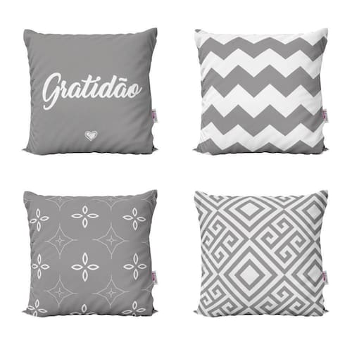 Almofadas Geometricas Cinza Gratidão Para Quarto 40X40 Decorar sua casa com lindas Almofadas é aliar conforto e personalidade. E não existe sensação melhor do que poder chegar em casa depois de um dia cansativo de trabalho e curtir o aconchego do nosso lar. E por falar em aconchego, um item que transmite muito bem isso são as Almofadas Decorativas que você encontra na Novadecora. Se você é daqueles que adora decoração e gosta de deixar a sua casa com a sua personalidade, aqui na Novadecora é o lugar ideal para encontrar as almofadas mais lindas, dos mais variados estilos. Kit Com 4 Almofadas Decorativas em impressão digital com estampa exclusiva frente e verso Tecido Capa confeccionada em tecido oxford 100% poliéster, um tecido de ótima qualidade e durabilidade. O oxford proporciona mais conforto e um toque agradável, além das cores ficarem mais vivas deixando seu ambiente mais decorado. Características e especificações: Marca: novadecora Tecido: oxford Almofada já cheia pronta para uso Fibra siliconizada anti-alérgica e anti-ácaro com forro em tnt Almofada lavável - sem perder a qualidade e impressão Zíper invisível Dimensões lxa 40x40 cm Conteúdo da embalagem 4 almofadas com enchimentos - Amarelo Importante sobre lavagem: - Lavar manualmente com sabão neutro - Temperatura máxima de lavagem 40°C. - Não usar alvejante. - Secar a sombra. - Temperatura máxima de base do ferro 110°C. - Não limpar a seco. : Três meses contra defeitos de fabricação. As cores das estampas podem variar de acordo com a calibração do seu monitor. AVISO: Não nos responsabilizaremos pela diferença de cores em caso de pedidos feitos separadamente, no caso produzidos em lotes diferentes. Agradecemos a visita e boas compras Marca: Novadecora Ean: 6015246331300